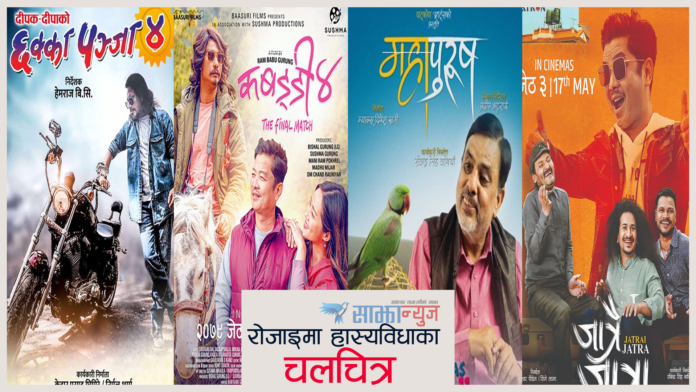 काठमाडौँ। : हास्यव्यङ्ग्य विधालाई प्राथमिकता दिइएको नेपाली चलचित्रका चल्ने गरेको छन् । यो वर्ष सर्वाधिक कमाइ गर्ने तीन चलचित्र ‘कबड्डी ४’, ‘छक्का पञ्जा ४’ र ‘महापुरुष’ हास्य विधामा आधारित छन् । यीबाहेक दुई नम्बरी, के घर के डेरा र झिङ्गेदाउ पनि हास्य विधामै रहेको चलचित्र हो ।