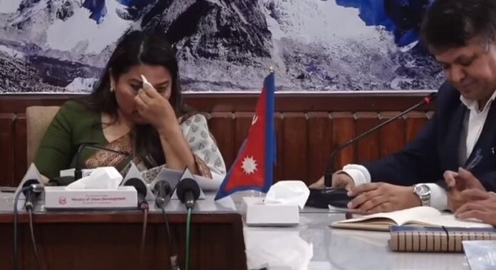 सहरी विकास मन्त्री रामकुमारी झाँक्री मन्त्रालयबाट विदाई हुँदा रोएकी छन् ।